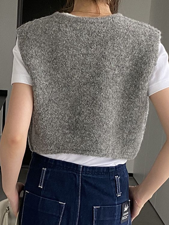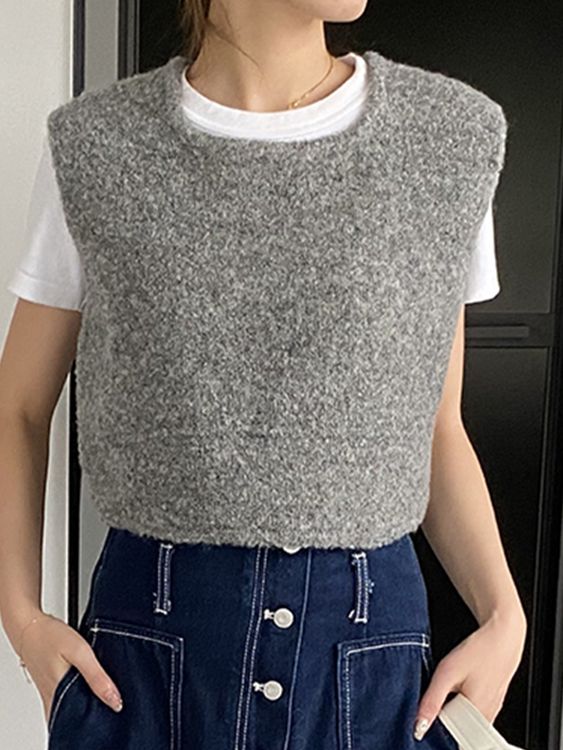 넥 라운드 여성 스웨터 조끼