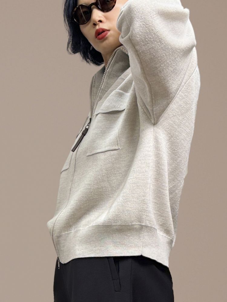 심플하면서도 세련된 집업 디자인은 미니멀한 실루엣을 완성하며, 깔끔한 라인과 적당한 루즈핏이 체형을 자연스럽게 커버해줍니다. 또한 고급스러운 골지 조직은 보온성과 내구성을 높여 계절감을 살린 스타일링이 가능합니다.