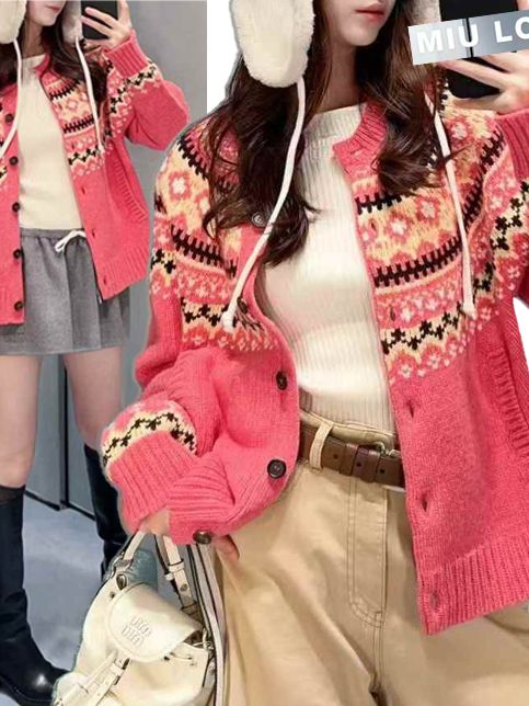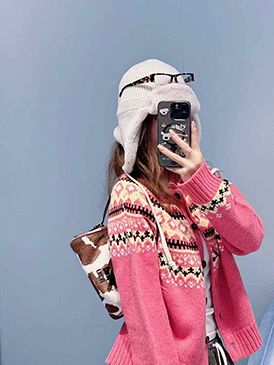 노르딕 핑크 니트 가디건”