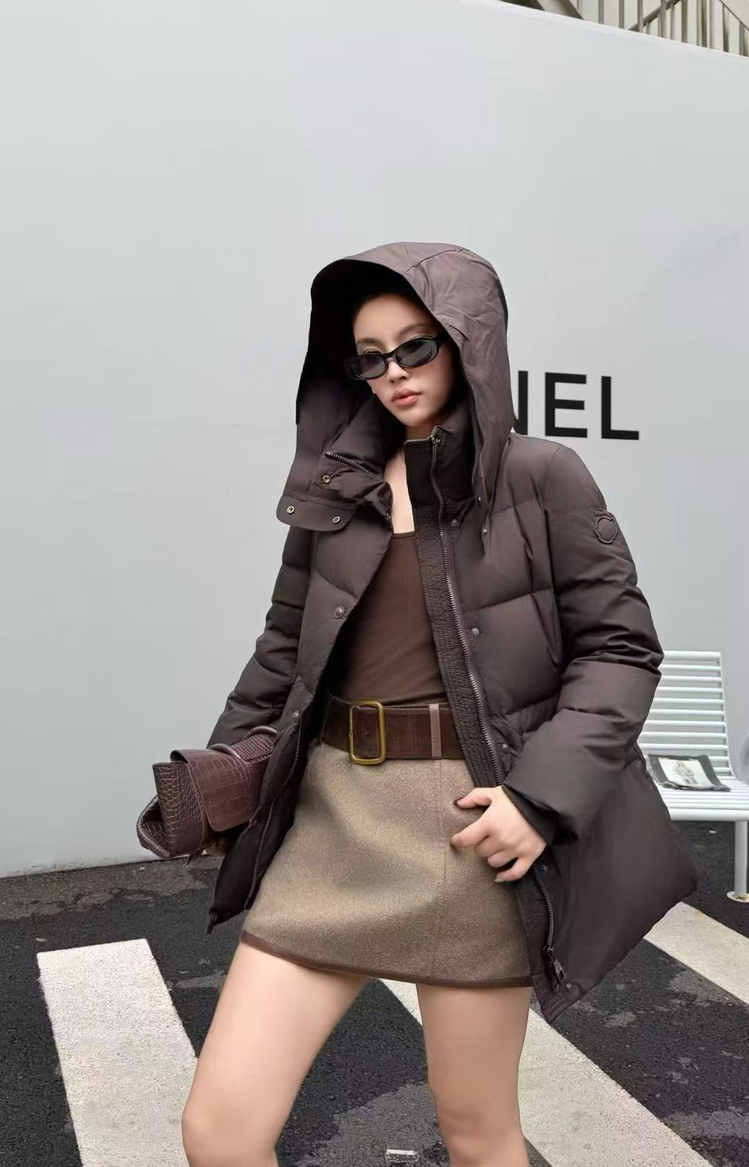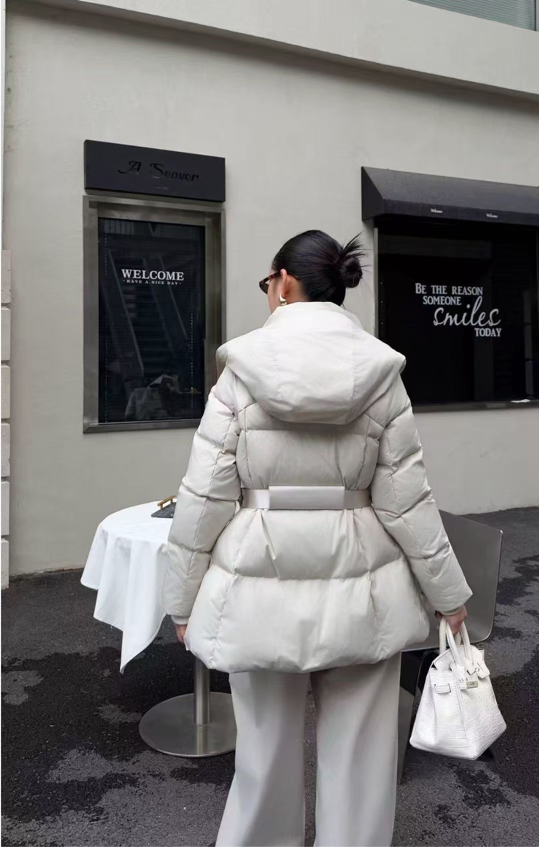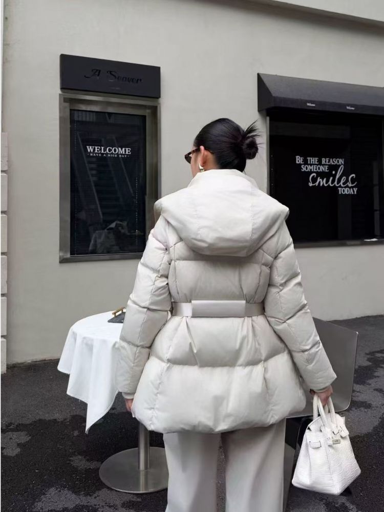 하이넥 디자인이 찬 바람을 완벽히 막아주며, 허리 스트랩 포인트로 슬림한 실루엣을 연출
