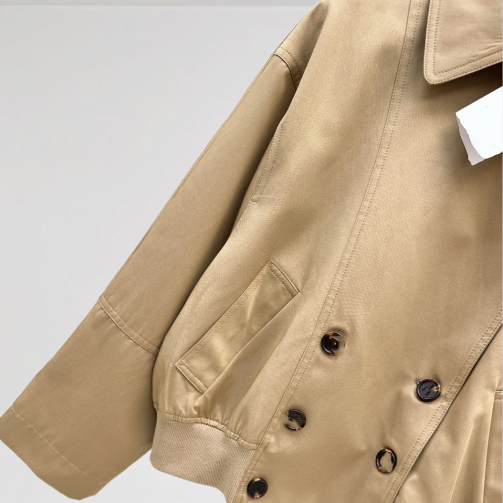 디자인: 더블 버튼과 카라 디테일, 실용적인 포켓 장식