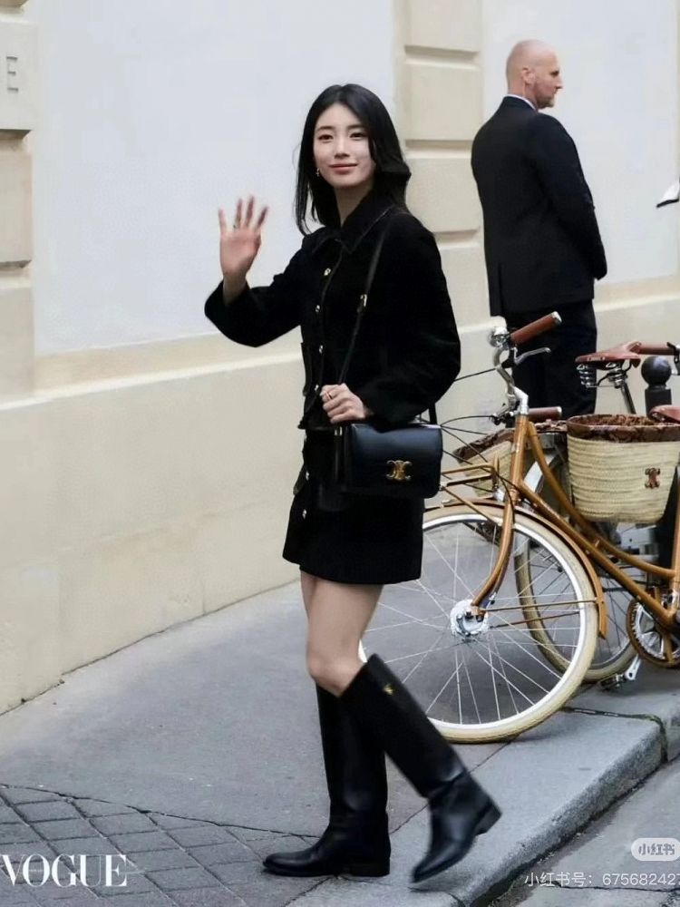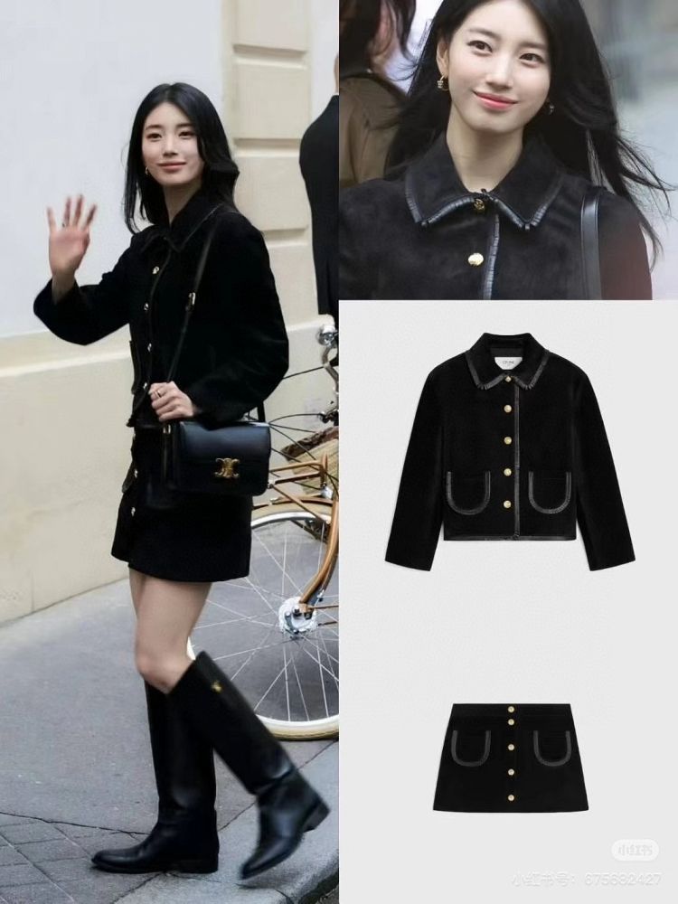 허리선 위로 떨어지는 세련된 숏 기장으로 레그 라인을 길어 보이게 연출하며,