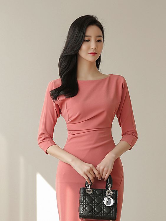 스타일리시 칠부 소매 슬림핏 랩 스커트 210304-001