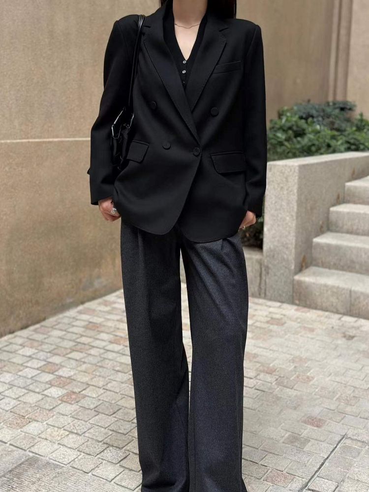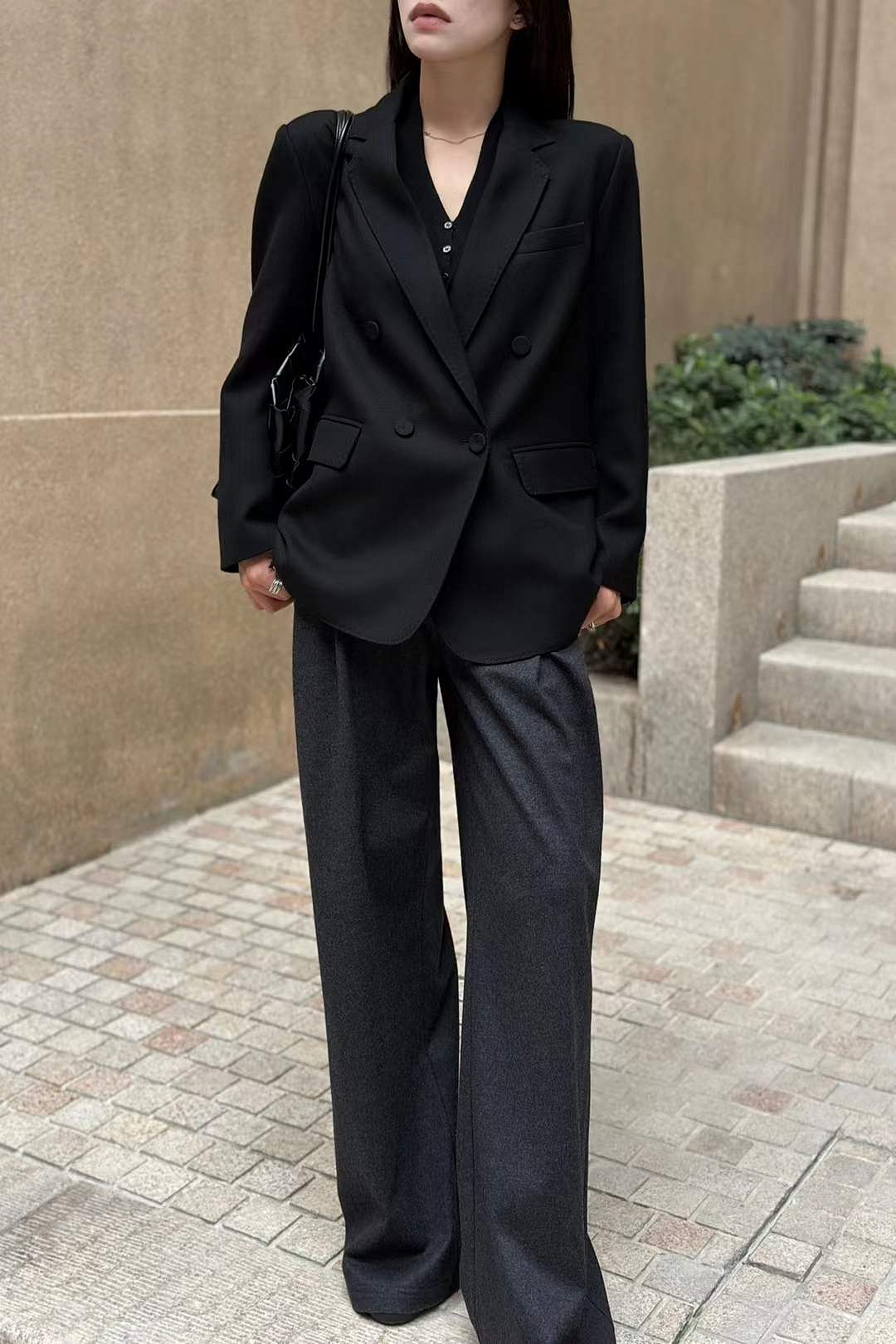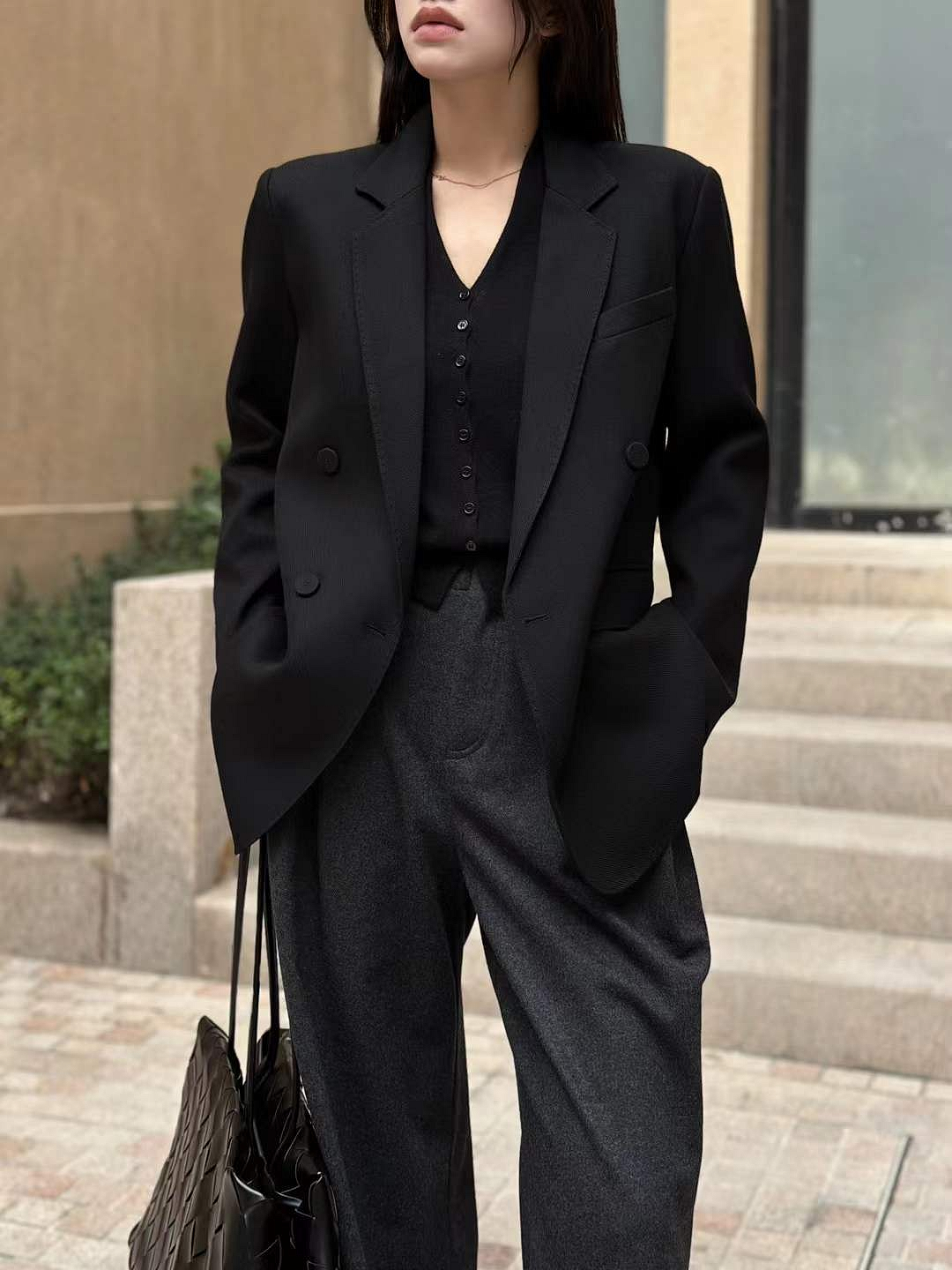블랙 더블버튼 테일러드 핸드메이드 호시 자켓 – 여성 하이엔드 오피스룩