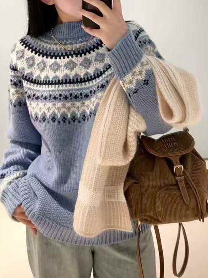 클래식한 페어아일 노르딕 패턴이 돋보이며, 여유 있는 루즈핏으로 체형에 구애 없이 편안하게 착용 가능해요.